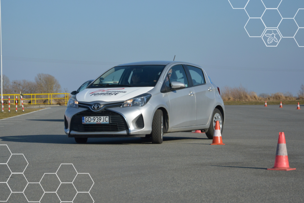 - szkolenie pojazdem zapewnionym przez ODTJ Autodrom Pomorze (Toyota Yaris z manualną skrzynią biegów).